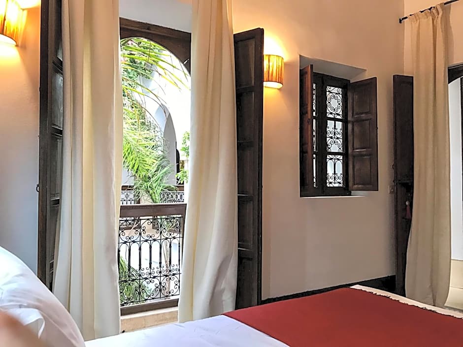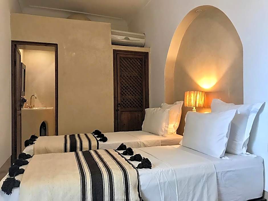 This room offers an private bathroom with a shower and a tadelakt bathtub.
